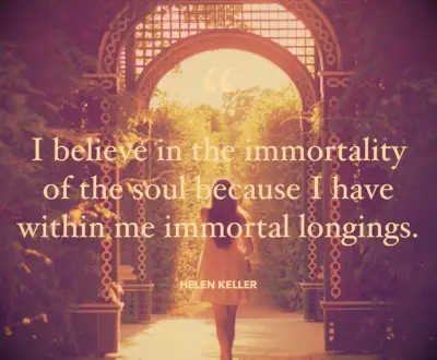 Ik geloof in de onsterfelijkheid van de ziel omdat ik in mij onsterfelijke verlangens heb. - Helen Keller