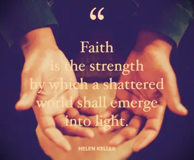 Geloof is de kracht waarmee een verbrijzelde wereld in het licht zal verschijnen. - Helen Keller