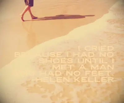 Ik huilde omdat ik geen schoenen had totdat ik een man ontmoette die geen voeten had. - Helen Keller