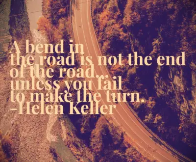 Een bocht in de weg is niet het einde van de weg ... tenzij je de beurt niet maakt. - Helen Keller