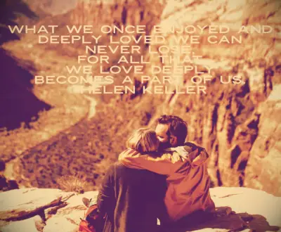 Wat we ooit leuk hebben genoten en diep geliefd we kunnen nooit verliezen, want alles waar we diep van houden, wordt een deel van ons. - Helen Keller