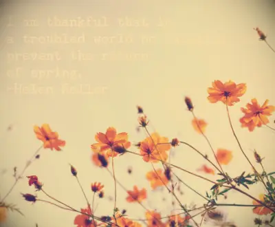 Ik ben dankbaar dat in een onrustige wereld geen ramp de terugkeer van de lente kan voorkomen. - Helen Keller