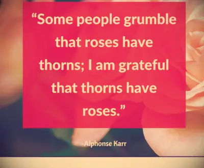 Sommige mensen mopperen dat rozen doornen hebben; Ik ben dankbaar dat doornen rozen hebben.