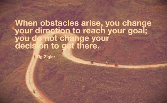 Wanneer er obstakels ontstaan, verander je van richting om je doel te bereiken; U verandert uw beslissing om daar te komen niet. – Zig Ziglar