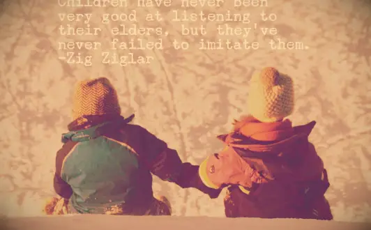 Kinderen zijn nog nooit zo goed geweest in het luisteren naar hun ouderen, maar ze hebben ze nooit gefaald om hen te imiteren. - Zig Ziglar