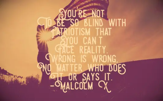 Je bent niet zo blind van patriottisme dat je de realiteit niet kunt onder ogen zien. Fout is verkeerd, ongeacht wie het doet of zegt het. - Malcolm X