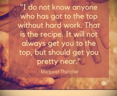 Ik ken niemand die zonder hard werken de top heeft bereikt. Dat is het recept. Het zal je niet altijd naar de top brengen, maar zou je vrij dichtbij moeten komen. - Margaret Thatcher