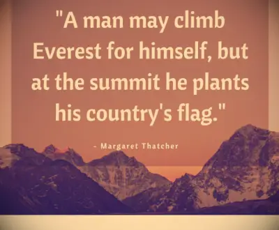 Een man kan Everest voor zichzelf beklimmen, maar op de top plant hij de vlag van zijn land. -Margaret Thatcher
