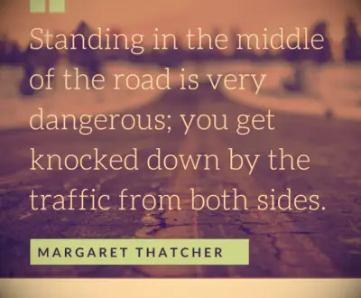 In het midden van de weg staan is erg gevaarlijk; Je wordt van beide kanten door het verkeer neergehaald. - Margaret Thatcher