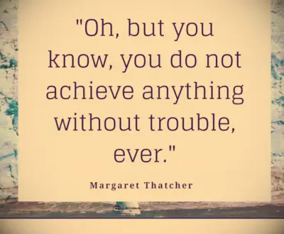 Oh, maar weet je, je bereikt nooit iets zonder problemen. -Margaret Thatcher