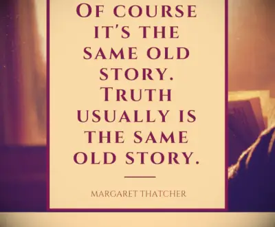 Natuurlijk is het hetzelfde oude verhaal. Waarheid is meestal hetzelfde oude verhaal. -Margaret Thatcher