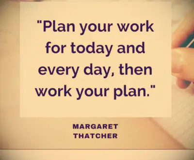 Plan uw werk voor vandaag en elke dag en werk vervolgens uw plan. -Margaret Thatcher