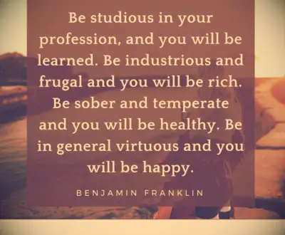Wees leergierig in je beroep, en je zult worden geleerd. Wees ijverig en zuinig en je zult rijk zijn. Wees nuchter en gematigd en je zult gezond zijn. Wees in het algemeen deugdzaam en je zult blij zijn.