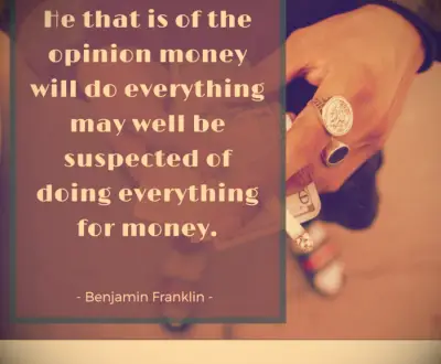 Hij die van mening is dat geld alles zal doen, kan er goed van worden verdacht om alles voor geld te doen.