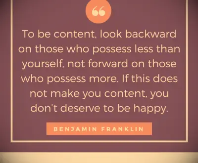 Om tevreden te zijn, kijk je achteruit op degenen die minder bezitten dan jezelf, niet vooruit naar degenen die meer bezitten. Als dit je niet tevreden maakt, verdien je het niet om gelukkig te zijn.