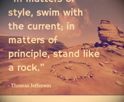 In stijl, zwem met de stroming; In principe, ga staan als een rots. -Thomas Jefferson