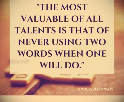 De meest waardevolle van alle talenten is die van het nooit gebruiken van twee woorden wanneer men het zal doen. -Thomas Jefferson