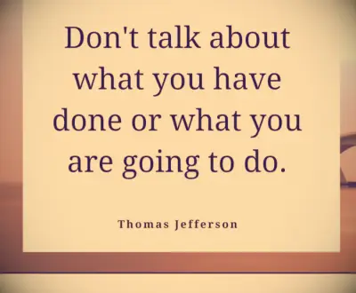 Praat niet over wat je hebt gedaan of wat je gaat doen. -Thomas Jefferson
