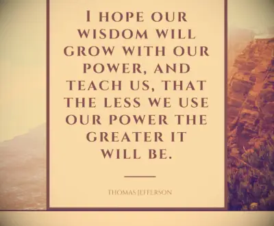 Ik hoop dat onze wijsheid met onze kracht zal groeien en ons zal leren, dat hoe minder we onze kracht gebruiken, hoe groter het zal zijn. -Thomas Jefferson