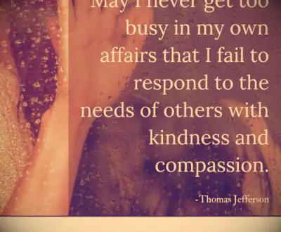 Mag ik nooit te druk worden in mijn eigen zaken dat ik niet reageer op de behoeften van anderen met vriendelijkheid en mededogen. -Thomas Jefferson