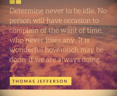 Bepaal nooit inactief te zijn. Niemand zal de gelegenheid hebben om te klagen over de gebrek aan tijd, die er nooit iets verliest. Het is geweldig hoeveel kan worden gedaan, als we het altijd doen. -Thomas Jefferson