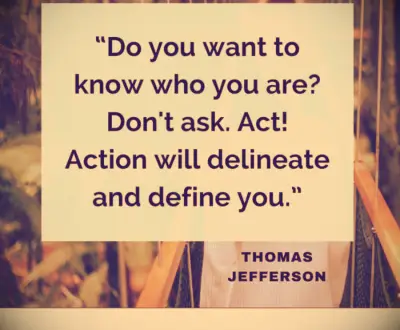 Wil je weten wie je bent? Vraag het niet. Handeling! Actie zal u afbakenen en definiëren. -Thomas Jefferson