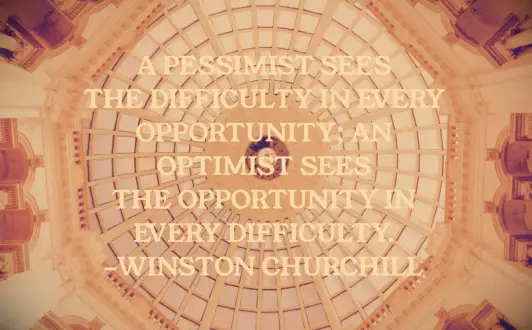 Een pessimist ziet de moeilijkheid in elke gelegenheid; Een optimist ziet de kans in elke moeilijkheid. - Winston Churchill