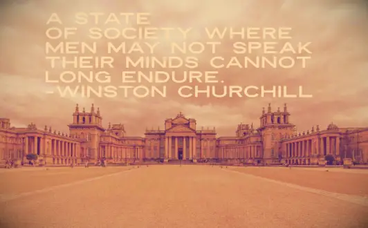 Een staat van de samenleving waar mannen misschien niet hun mening spreken, kan niet lang blijven bestaan. - Winston Churchill