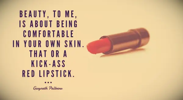 Schoonheid gaat voor mij over comfortabel zijn in je eigen huid. Dat, of een kick-ass rode lippenstift. - Gwyneth Paltrow