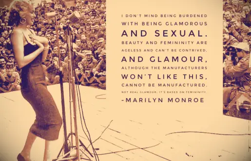 Ik vind het niet erg om belast te worden met glamoureus en seksueel. Schoonheid en vrouwelijkheid zijn tijdloos en kunnen niet gekunsteld worden, en glamour, hoewel de fabrikanten dit niet leuk zullen vinden, kunnen niet worden vervaardigd. Geen echte glamour; Het is gebaseerd op vrouwelijkheid. - Marilyn Monroe