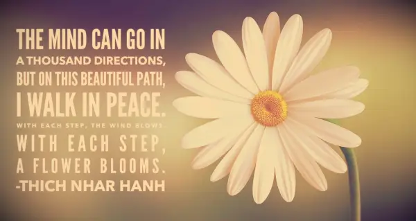De geest kan in duizend richtingen gaan, maar op dit prachtige pad loop ik in vrede. Bij elke stap waait de wind. Bij elke stap bloeit een bloem. - Thich nhat hanh