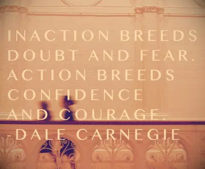 Inactiviteit veroorzaakt twijfel en angst. Actie veroorzaakt vertrouwen en moed. Als je angst wilt overwinnen, ga dan niet thuis zitten en denk erover na. Ga naar buiten en word druk. – Dale Carnegie