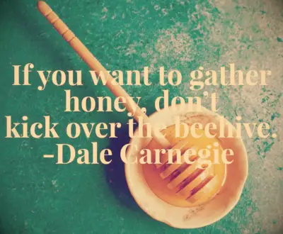 Als je honing wilt verzamelen, schop de bijenkorf niet om. - Dale Carnegie