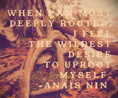 Als ik het diepst geworteld ben, voel ik het wildste verlangen om mezelf te ontwortelen. - Anaïs nin