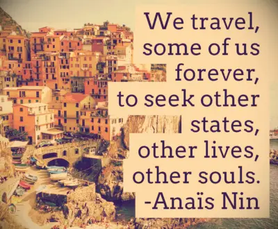 We reizen, sommigen van ons voor altijd, om andere staten, andere levens, andere zielen te zoeken. - Anaïs nin