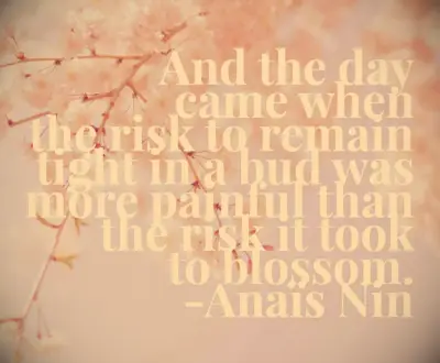 En de dag kwam toen het risico om strak te blijven in een knop pijnlijker was dan het risico dat het kostte om te bloeien. - Anaïs nin