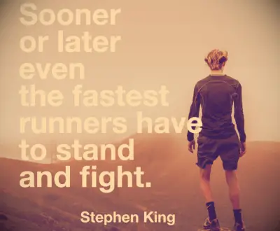 Vroeg of laat moeten zelfs de snelste lopers staan en vechten. - Stephen King