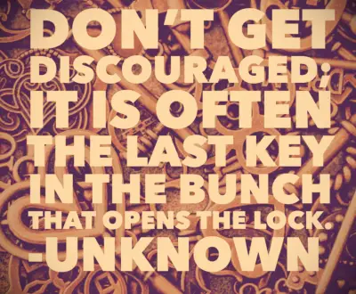 Raak niet ontmoedigd; Het is vaak de laatste sleutel in het stel dat het slot opent. - Onbekend