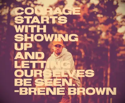 De moed begint met het verschijnen en onszelf laten zien. - Brené Brown