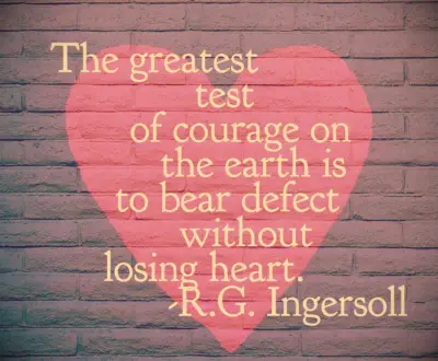 De grootste test van moed op aarde is om een nederlaag te dragen zonder hart te verliezen. - R.G. Ingersoll