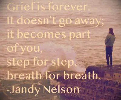 Verdriet is voor altijd. Het gaat niet weg; Het wordt een deel van jou, stap voor stap, adem voor adem. - Jandy Nelson