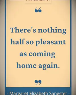 Er is niets half zo prettig dat weer thuiskomt. - Margaret Sangster