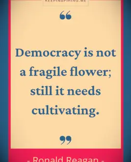 Democratie is geen fragiele bloem; Toch moet het cultiveren. - Ronald Reagan