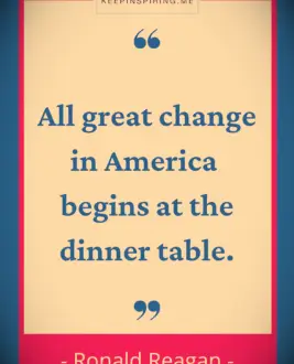 Alle grote verandering in Amerika begint aan de eettafel. - Ronald Reagan