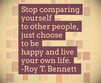 Stop met jezelf te vergelijken met andere mensen, kies er gewoon voor om gelukkig te zijn en je eigen leven te leiden. - Roy T. Bennett