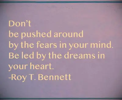 Laat je niet rondduwden door de angsten in je hoofd. Worden geleid door de dromen in je hart. - Roy T. Bennett