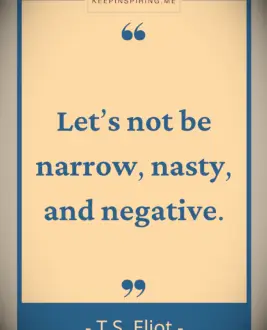 Laten we niet smal, smerig en negatief zijn. - T.S. Eliot